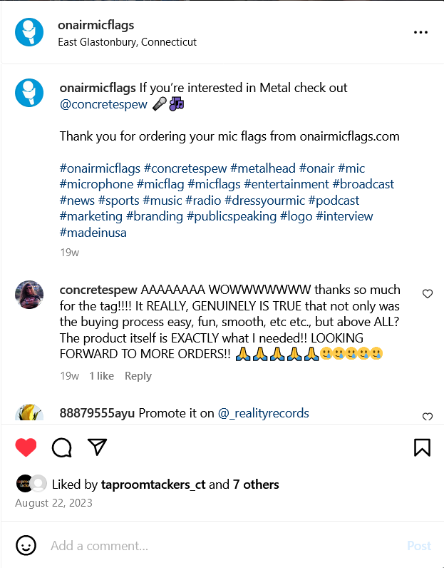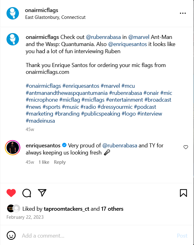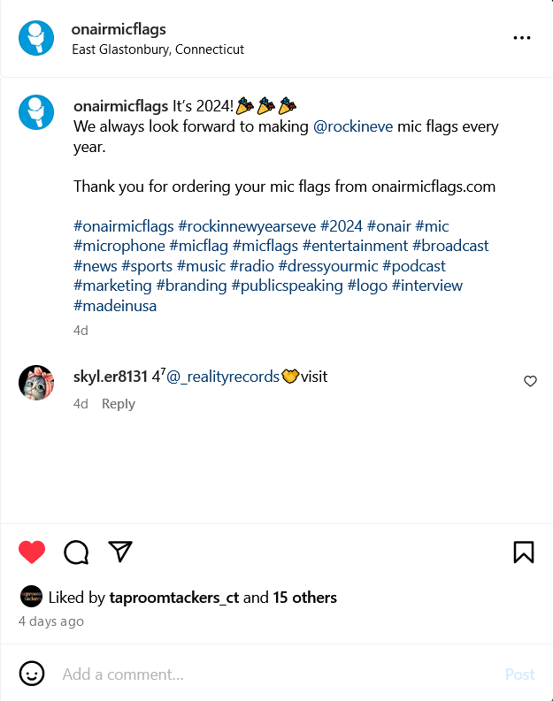 While at QNP I am in charge of running the social media accounts for On Air Mic Flags and Taproom Tackers. @onairmicflags @taproomtackers_ct