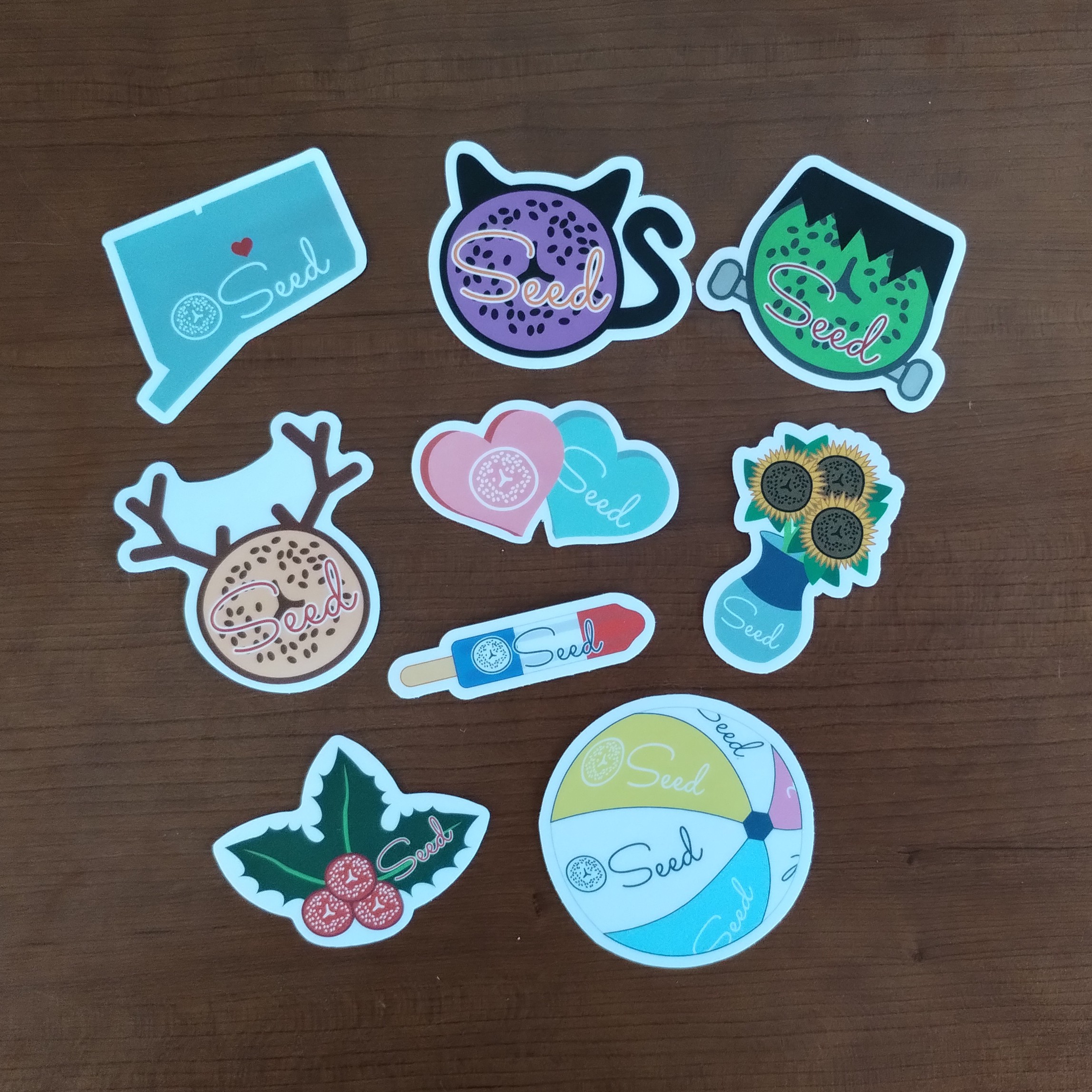 I do get to design seasonal stickers for Seed Kitchen + Bagelry, using their logo as a starting point.
